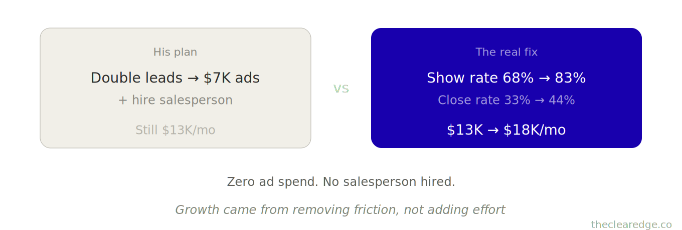 Revenue: $7K → $15K in 90 days by fixing the actual bottleneck.