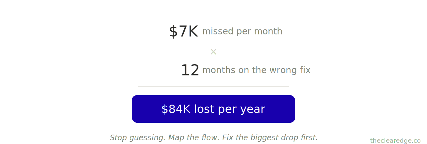 A: You burn $3,200–$7,000 projects and 180+ hours on surface fixes that move revenue by only $500/month, while the correct bottleneck could have added $5,000–$7,000+ monthly and $7K–$84K yearly that you never get back.