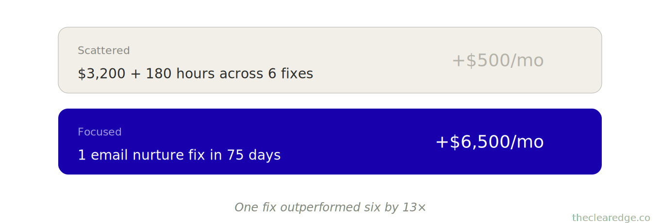 Revenue: $13K → $18K monthly in 90 days. Zero ad spend. No salesperson hired.