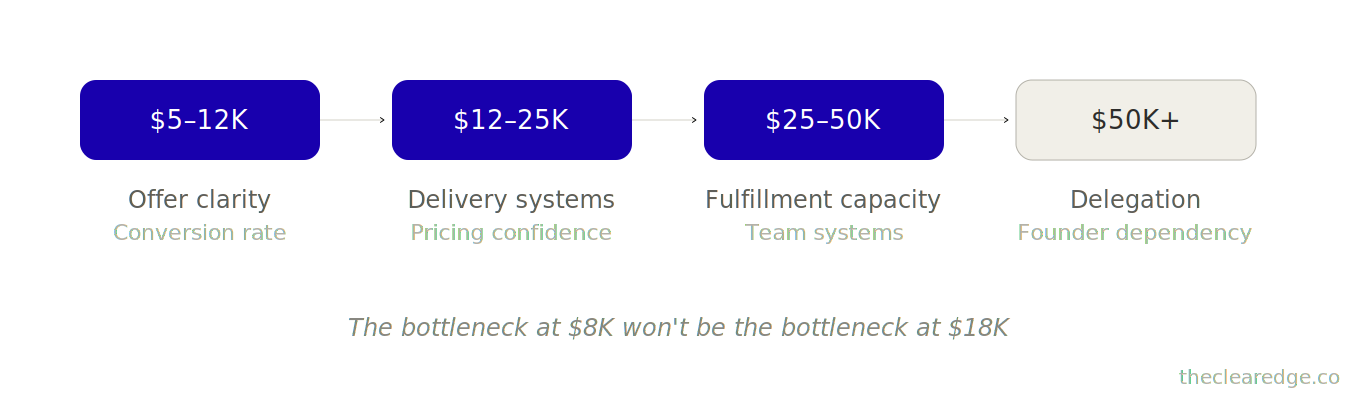 Bottleneck Patterns at $5K–$50K Months and How They Actually Show Up in Revenue
