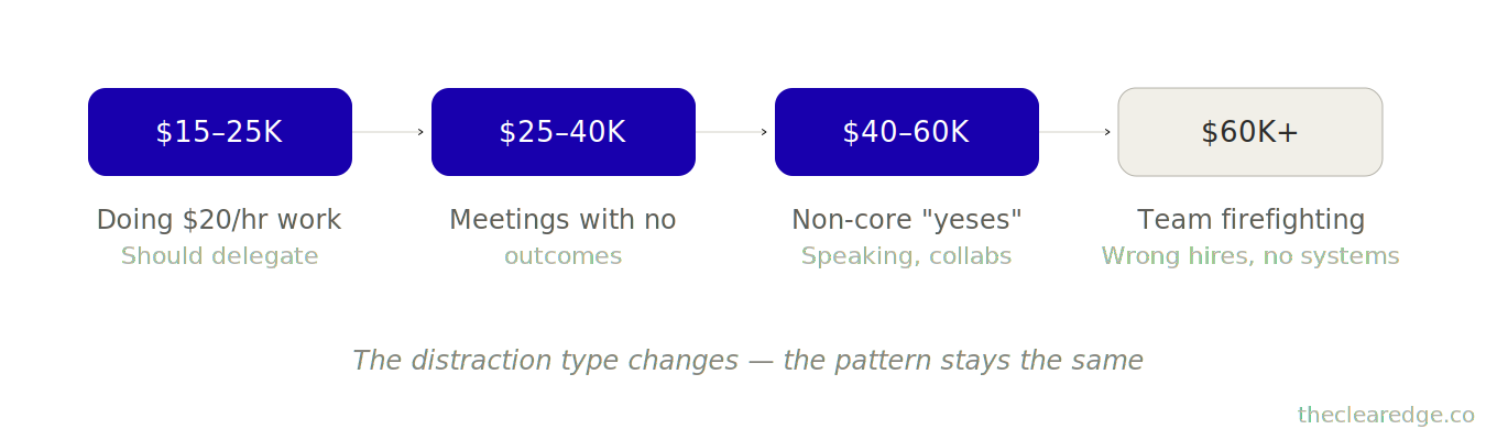 The Distraction Pattern Capping $30K–$50K Founders Who Can’t Protect Revenue Hours