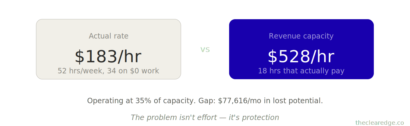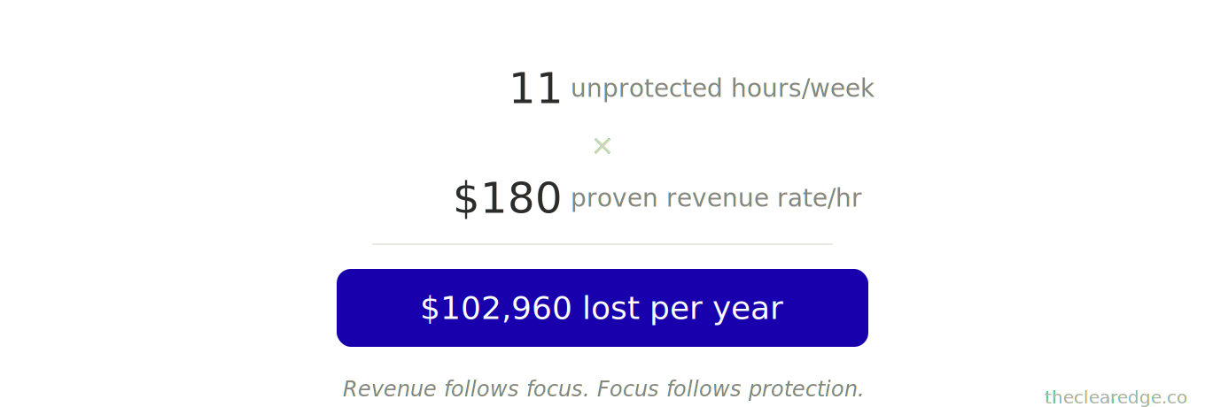 Every week you leave 15–25 high‑value hours unprotected, you quietly choose to forfeit $60K–$120K a year in capacity; start protecting your 20 and let The Clear Edge OS prove it.