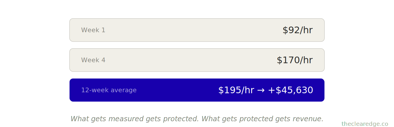 ☐ Logged this week’s revenue, total protected hours used, and revenue per protected hour so you can compare against the $32K–$41K → $47K–$54K lift.