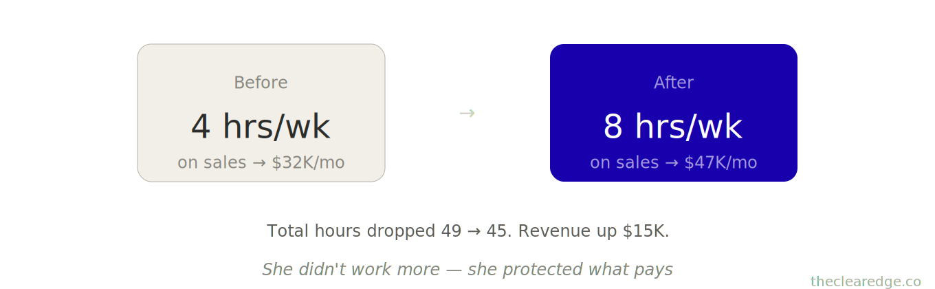 Growth didn’t come from more effort; it came from 20 protected hours doing the work that actually pays.
