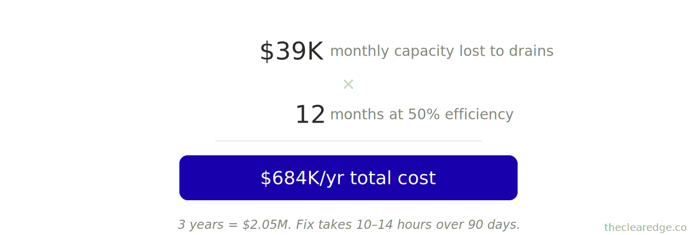 50% capacity loss from drains → $39K monthly opportunity cost