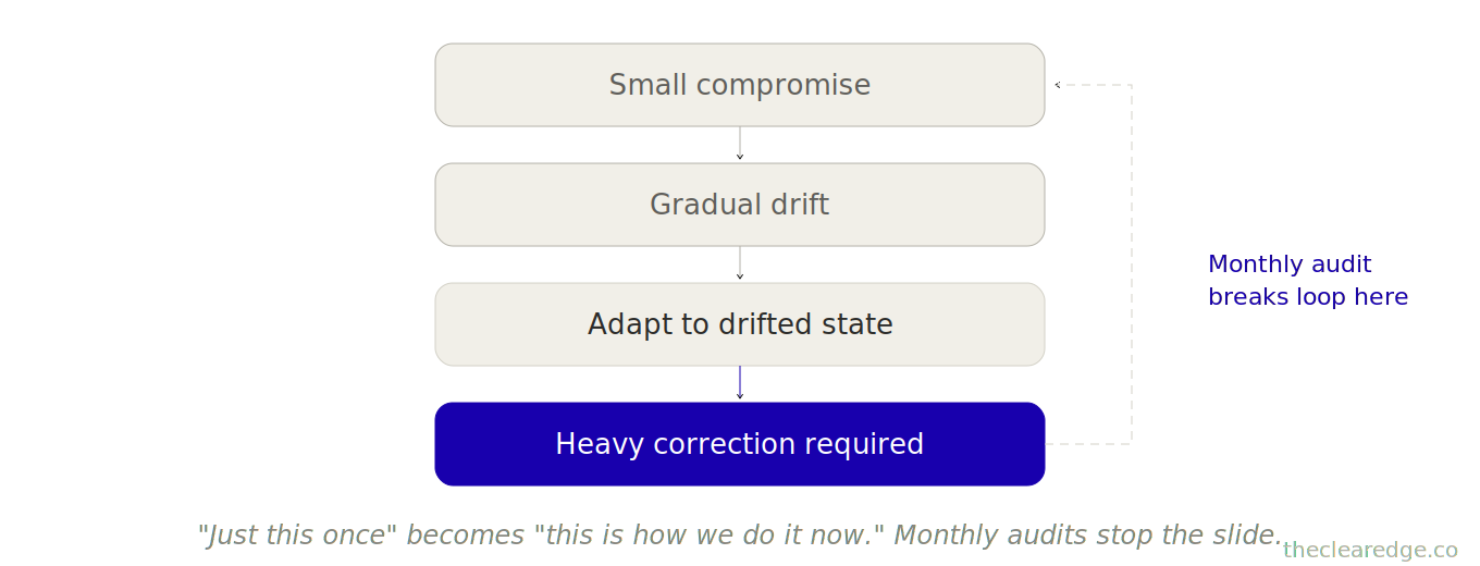 From here, install the Monthly Drift Audit as core infrastructure, not a nice idea: