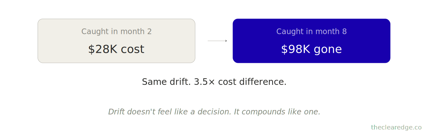 Once you see how quickly small compromises compound into $14K/month gaps, the Monthly Drift Audit stops being “nice to have” and becomes basic infrastructure