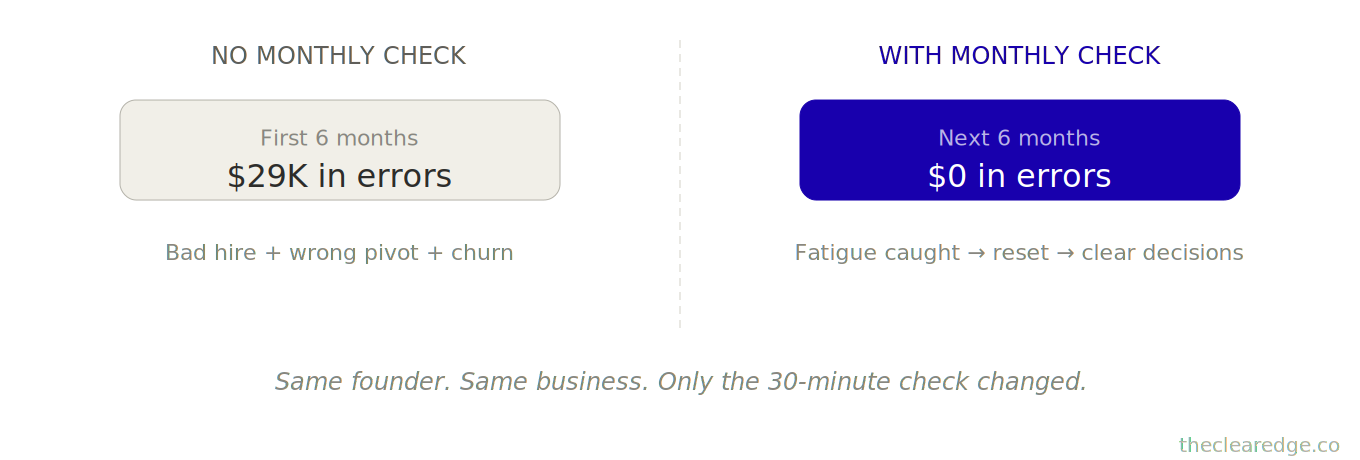 The Monthly Founder Psychology Check: The 30-Minute Ritual That Stops $20K–$50K in Fatigue-Driven Decisions
