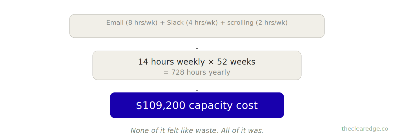2 hours weekly on social scrolling disguised as research → $15,600 yearly capacity cost