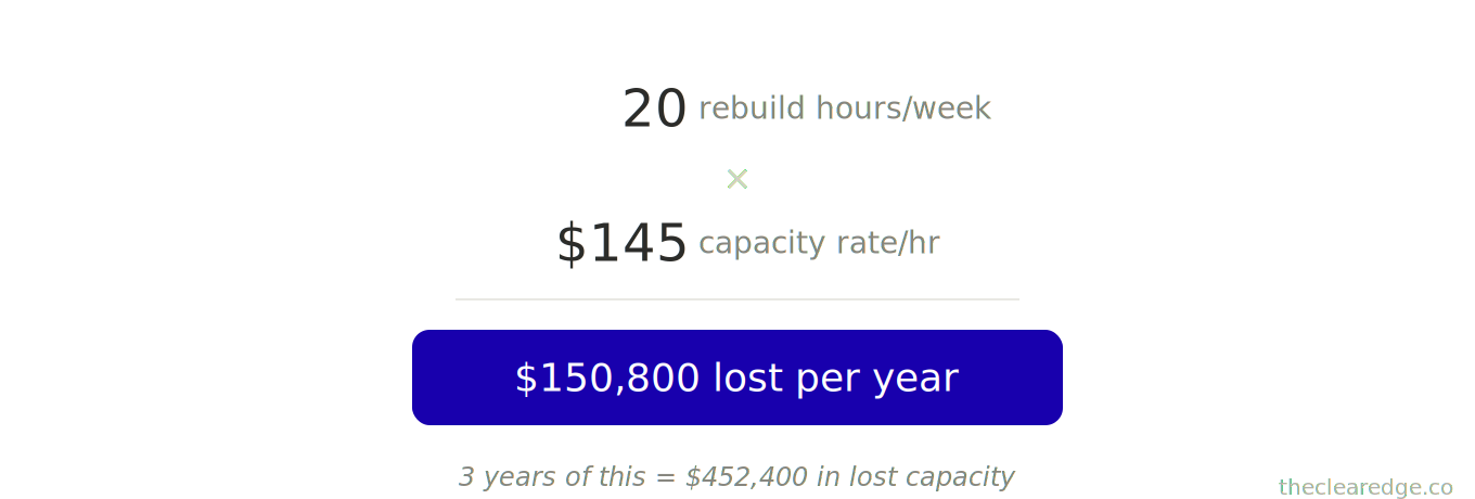 Every time you use this, you catch rebuild work before it quietly compounds into 18–29 weekly hours and $75K–$150K of lost capacity.